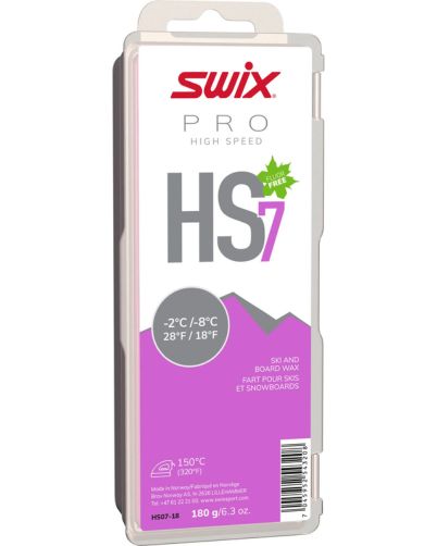 HS7 Violet fra Swix er en alsidig glidvoks designet til alpinski, snowboard og langrend. Den passer både til træning og konkurrence og er specielt velegnet til yngre løbere og fritidskørere. Voksens hårdhed gør den nem at arbejde med, hvilket sikrer et godt slutresultat. Den er helt fluorfri og 100% biologisk nedbrydelig og forbedrer effektivt skiglidet. Anvendelse kræver et voksjern, og det tager blot 8-10 sekunder at påføre. Det er vigtigt at lade voksen køle af til stuetemperatur for maksimal slidstyrke og anvende en temperatur på jernet på 150 °C.