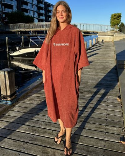 Surfmore badeponcho af 100% bomuld er et must-have for både surfere og vinterbadere. Designet til at give komfort og funktion i en flot ‘brick’ farve, som tiltrækker opmærksomhed. Med målene 75 x 110 cm passer den til de fleste, da den er i one-size. Den langhårede bomuld er både bæredygtig og suger hurtigt vand. Det gør omklædningen mere behagelig. Udover surfere, passer ponchoen også til strandgæster og til afslapning hjemme. Dens alsidighed og komfort gør, at den nemt følger med fra stranden til sofaen.