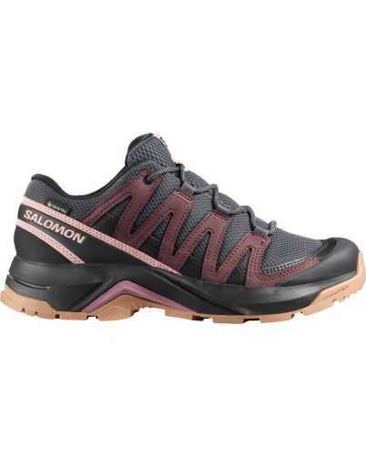 Women’s X-Adventure Recon GORE-TEX fra Salomon er en solid og alsidig vandresko til kvinder, skabt til et bredt udvalg af friluftsoplevelser. Den robuste overdel i nubucklæder sammen med beskyttende mesh sikrer både slidstyrke og modstand mod fugt. Den vandtætte GORE-TEX®-membran sikrer, at fødderne forbliver tørre under alle vejrforhold. Med en gribefast All Terrain Contagrip®-ydersål opnår du sikkert fodfæste på både tørre og våde underlag. Advanced Chassis™-konstruktionen tilbyder stabilitet og effektiv stødabsorbering, selv på længere ture. Inspireret af Salomons XA Pro-model forener skoen stabilitet, komfort og lang holdbarhed. Dette gør den ideel til varierede eventyr året rundt.